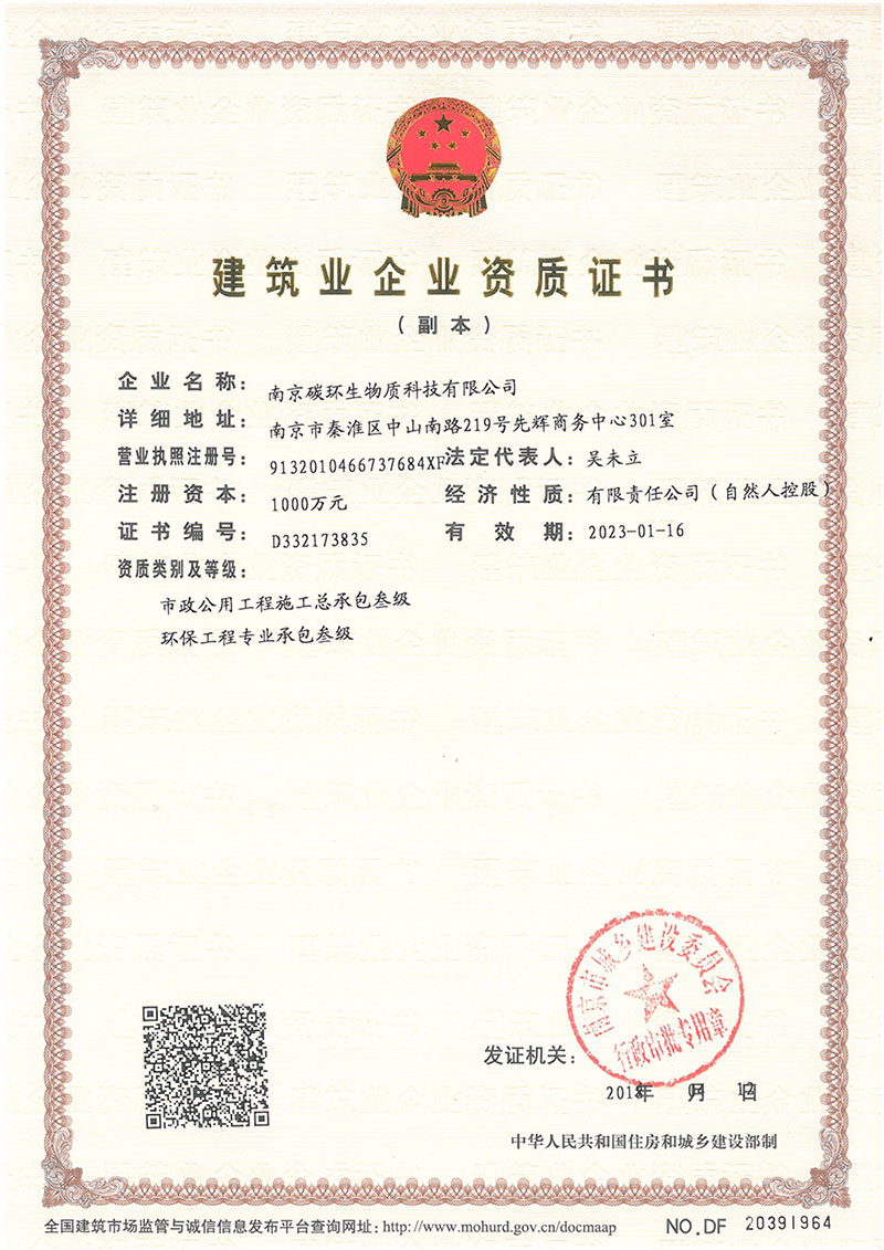 In April 2018, our company passed the certification of Nanjing Urban and Rural Construction Committee and obtained the certificate of engineering enterprise qualification certificate.