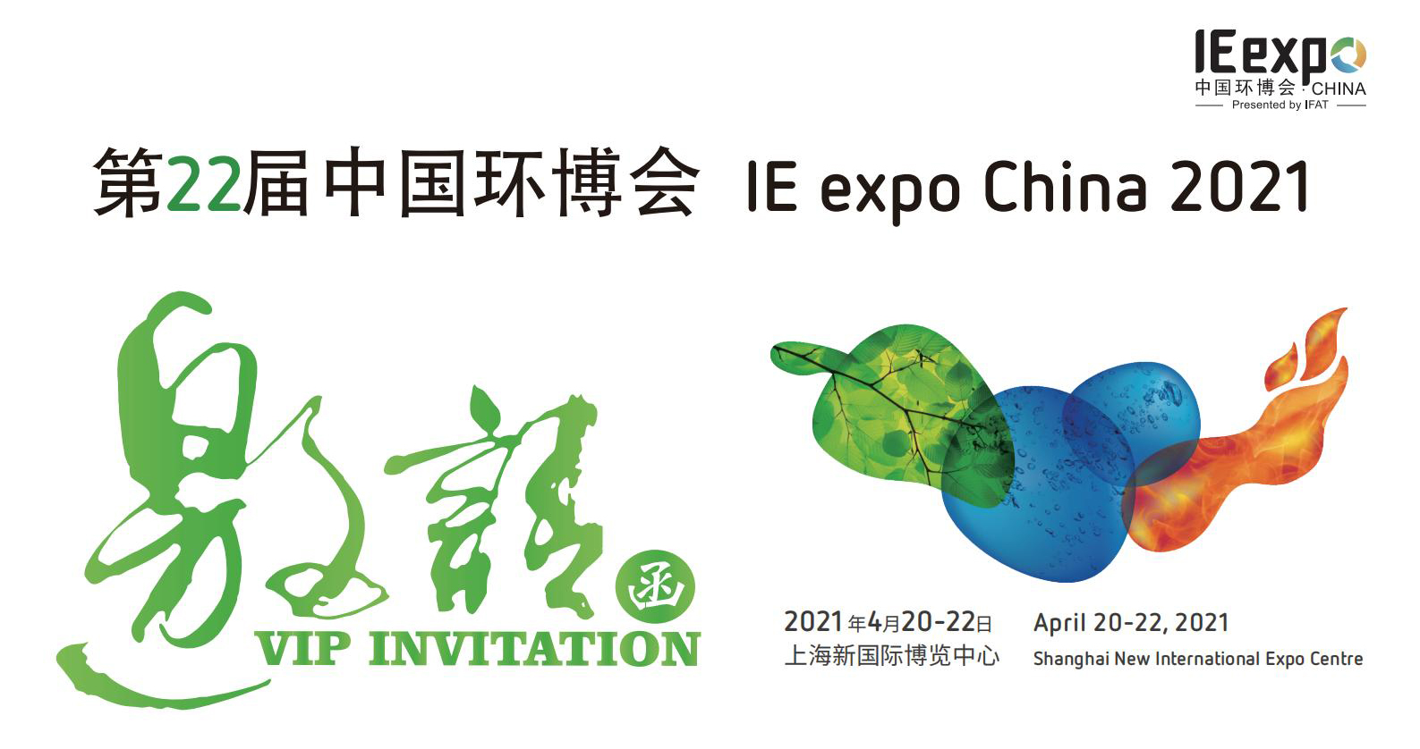 誠(chéng)摯邀請(qǐng)您參加2021年4月20日-22日在上海新國(guó)際博覽中心舉行的第22屆中國(guó)環(huán)博會(huì)。